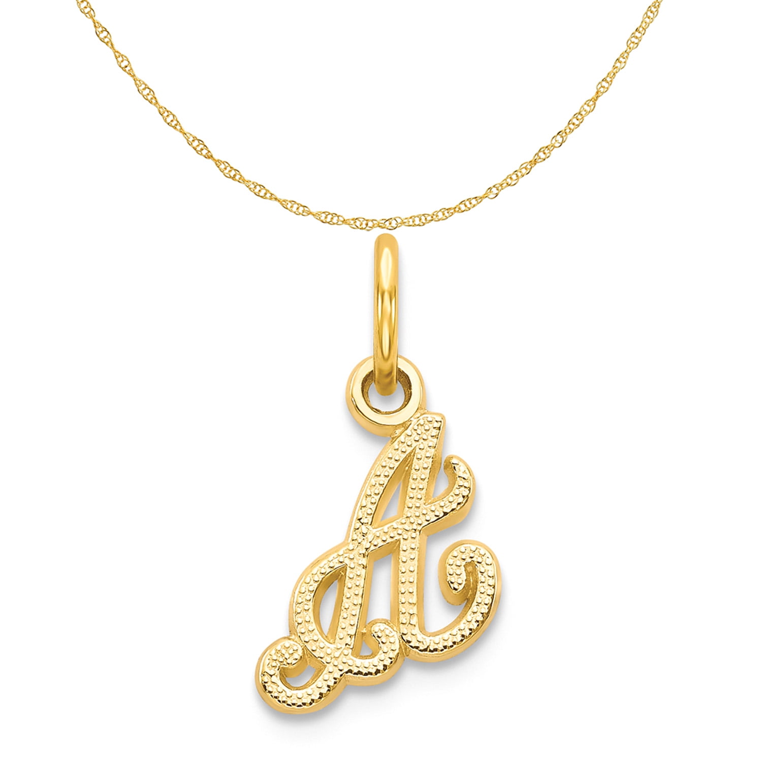 Carat In Karats 14k Yellow Gold Script Letter A Initial Pendant Charm 13 35mm X 8 58mm With 10k Yellow Gold Lightweight Rope Chain Necklace 16 Walmart Com